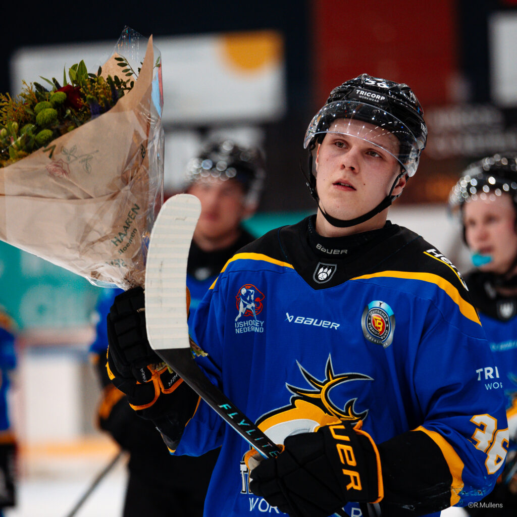 ‘In het begin had ik flink wat zenuwen en in de tweede periode werd ik wat rustiger. Toen speelden de jongens ook beter en dat straalde op mij af. Vervolgens kwam de derde periode, waarin het volledig misging. Ik heb tussendoor tips gevraagd aan Cedrick Andree, die mij overigens de hele wedstrijd positief probeerde te houden, ondanks het aantal tegengoals. Sowieso zijn Cedrick en Ruud goede voorbeelden voor mij, dus daar wil ik hen überhaupt voor bedanken. Cedrick kwam na afloop als eerste naar mij toe, en dat voelde ook goed, maar ik wilde zelf zo snel mogelijk van het ijs af.